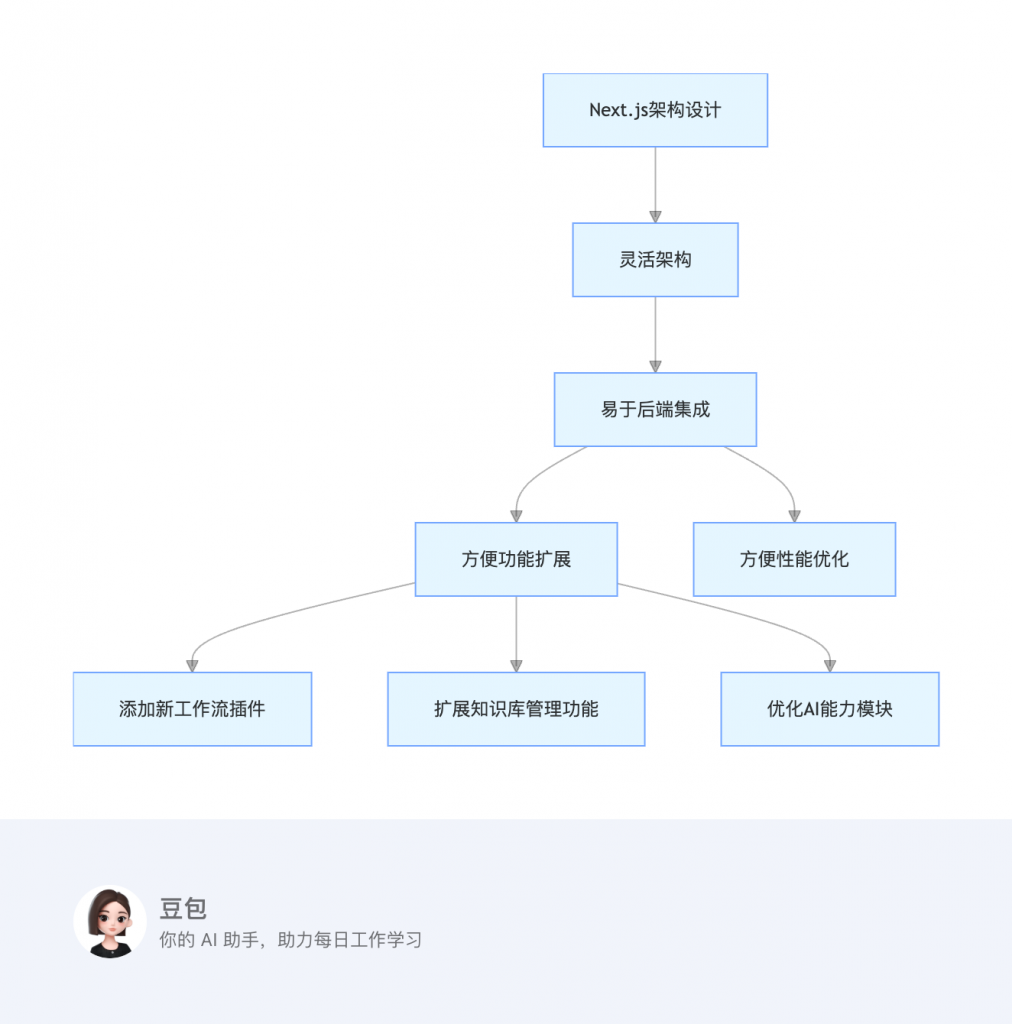 随着知识库内容的不断增长和用户量的增加,平台需要具备良好的可扩展性。Next.js 提供了灵活的架构设计,易于与后端服务集成,能够方便地进行功能扩展和性能优化。无论是添加新的工作流插件、扩展知识库管理功能还是优化 AI 能力模块,都可以在 Next.js 的基础上高效实现。其模块化的开发方式使得开发团队能够快速迭代和部署新功能,确保平台始终保持竞争力,适应不断变化的业务需求。